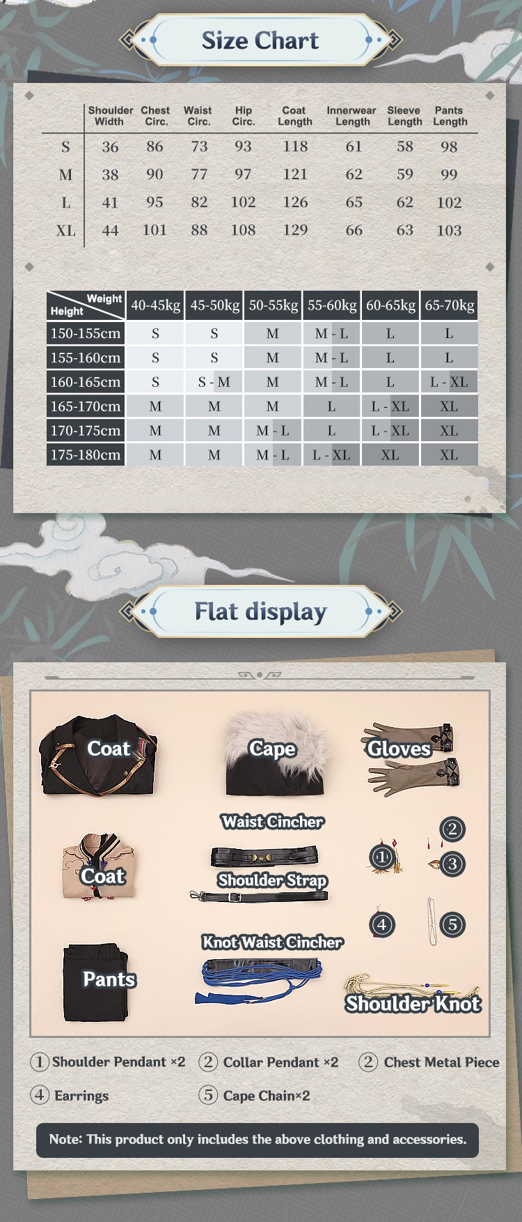 When washing, separate dark and light colors. Do not soak costumes with multi-color seams, and avoid warm or hot water to prevent color fading.