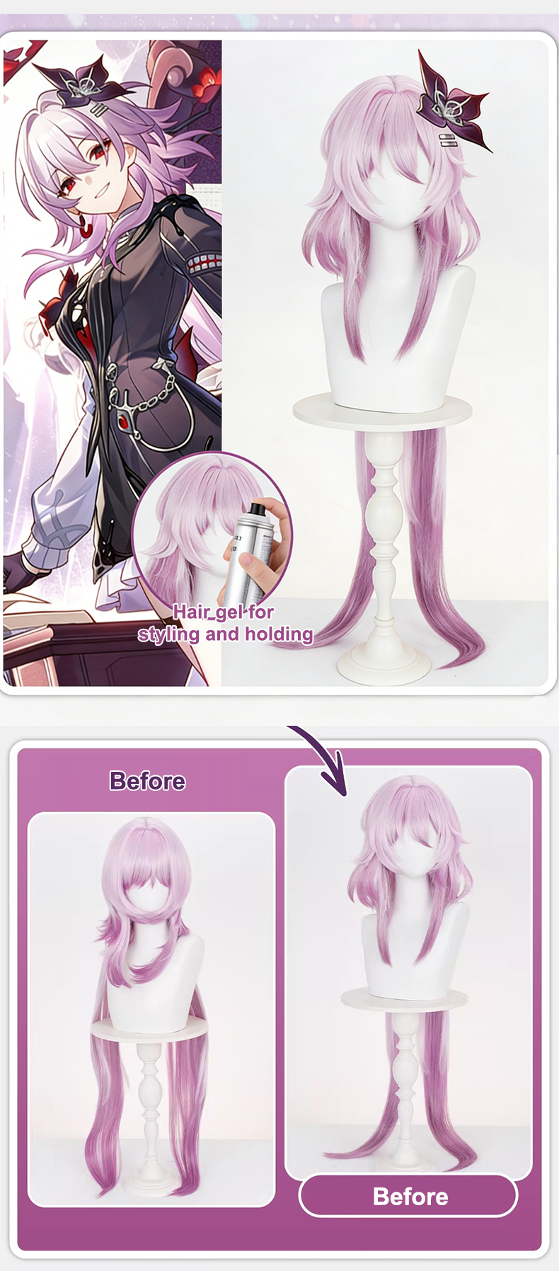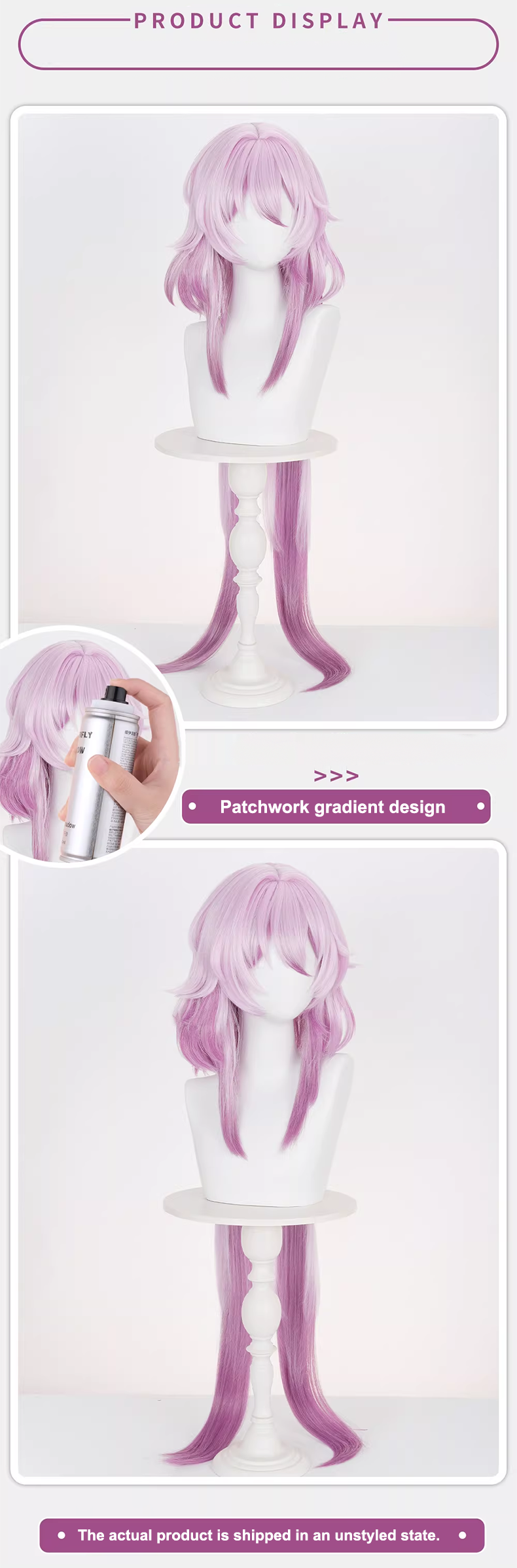 When the wig is not being worn, gently comb the strands following the wig’s original style, then place it on a wig stand with longer sections hanging naturally.