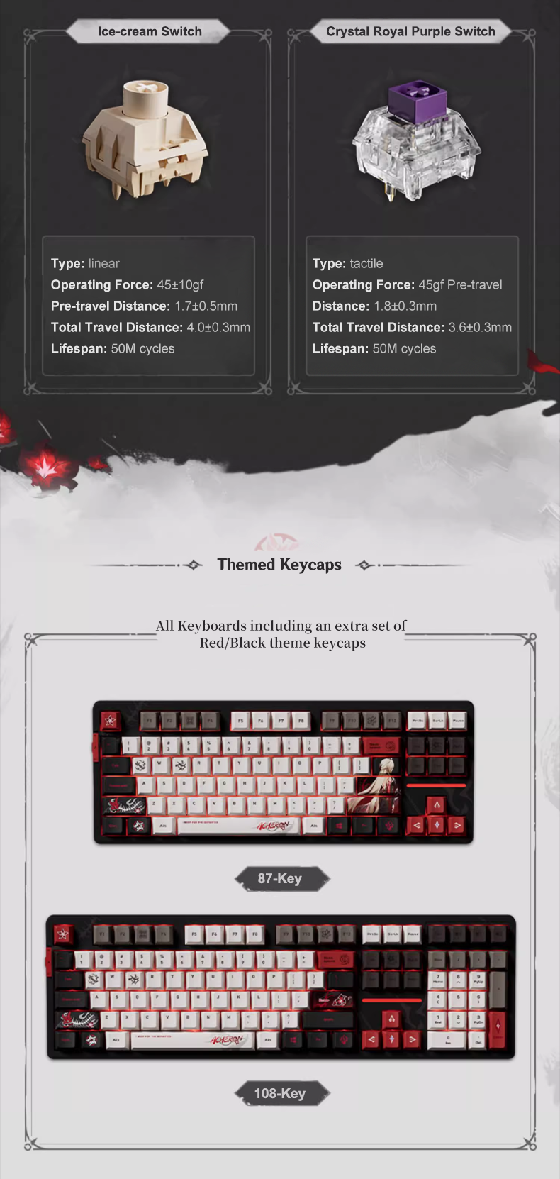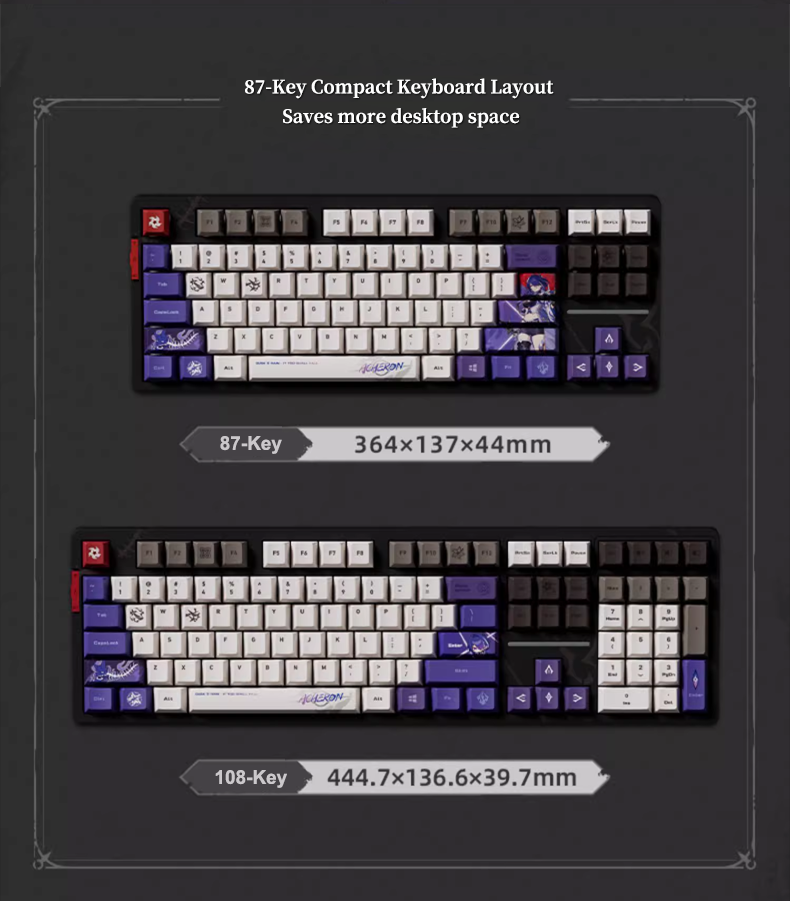 - Layout Options: 108-Key (Full-size), 87-Key (TKL)