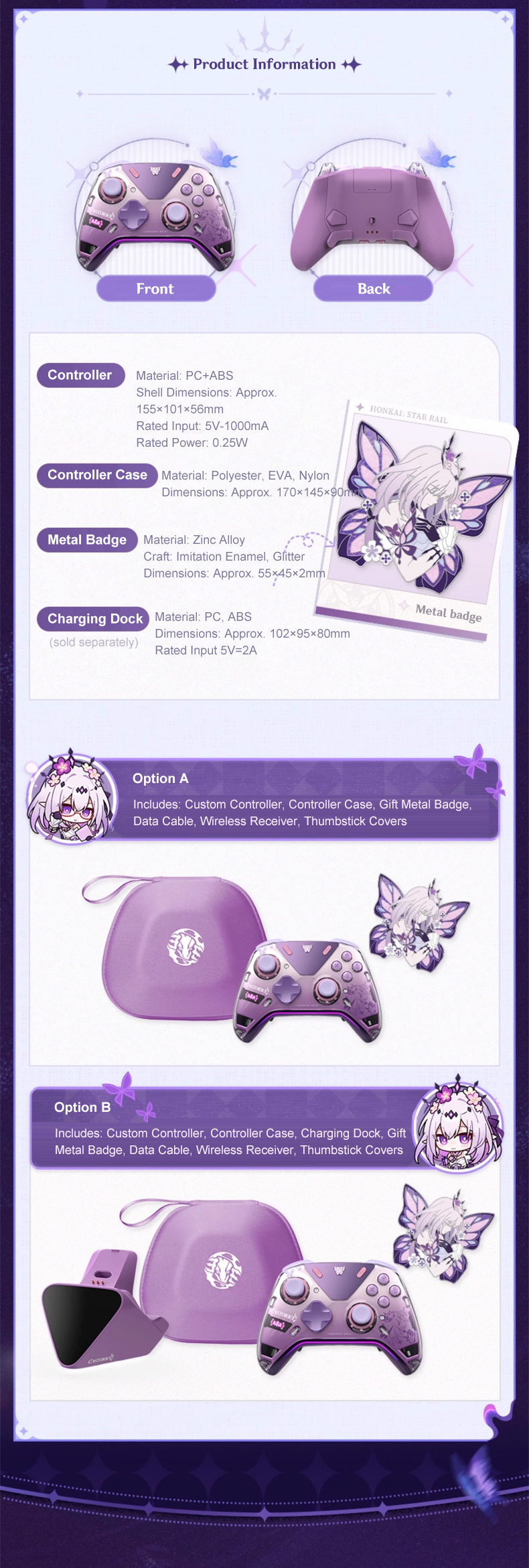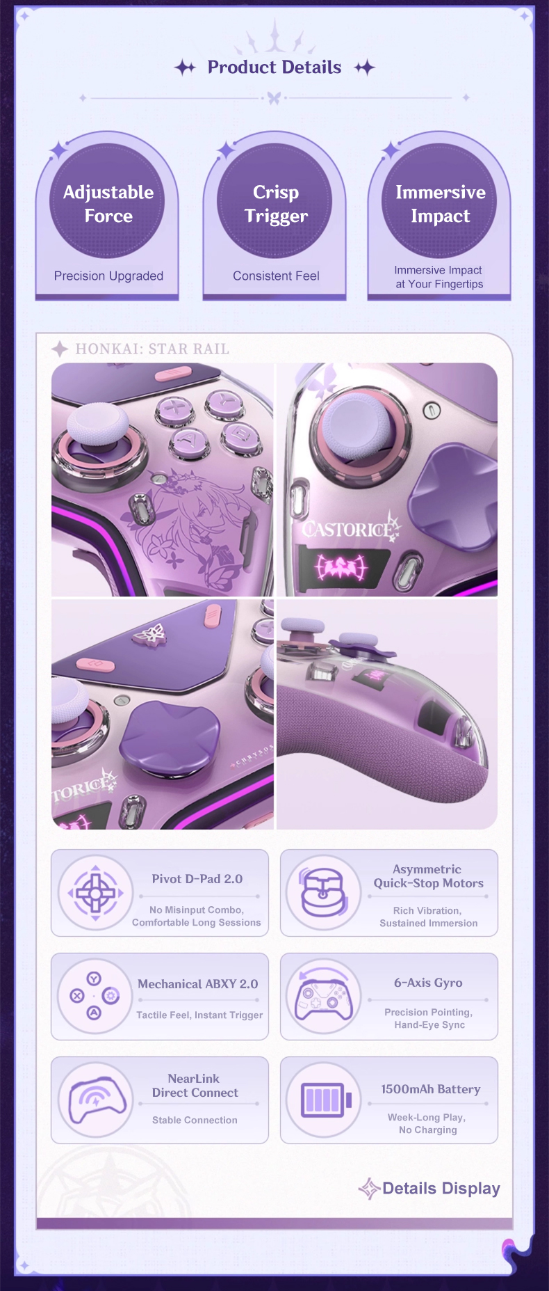 Official Honkai: Star Rail Castorice Haptic Feedback Pro Game Controller