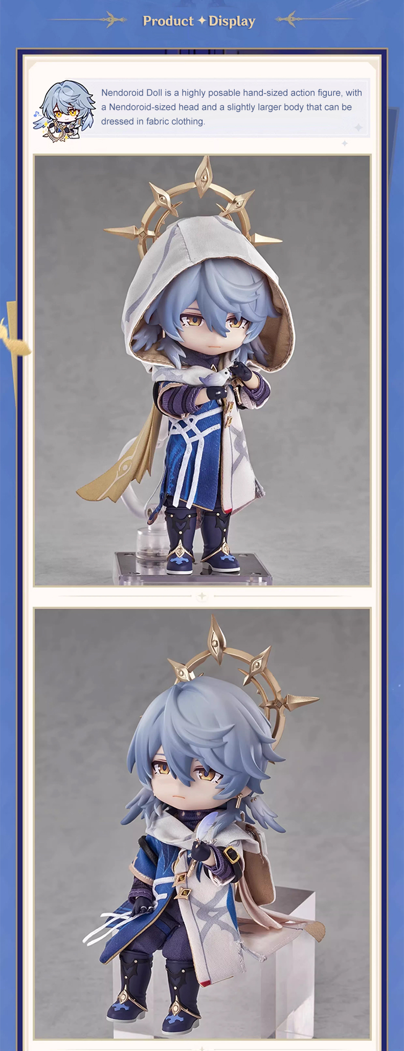 Nendoroid Doll is a series of palm-sized, highly articulated action figures. They feature the same head size as standard Nendoroids, but on a slightly larger, doll-like body that can easily be dressed up in real fabric clothing, offering amazing playability.